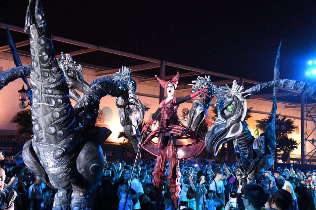 由花蓮縣政府主辦及文化局承辦的「2025花蓮國際藝術節」特別邀請享譽全球的荷蘭「近距離劇院 Close-Act Theatre」11月8至9日一連兩晚7時,在花蓮日出大道重慶市場旁帶來震撼全球的戶外沉浸式行動劇鉅作《恐龍入侵》,縣長徐榛蔚昨(8)日晚間在文化局代理局長曾之妤及立委傅崐萁陪同下與鄉親們一起欣賞國際級的震撼演出。