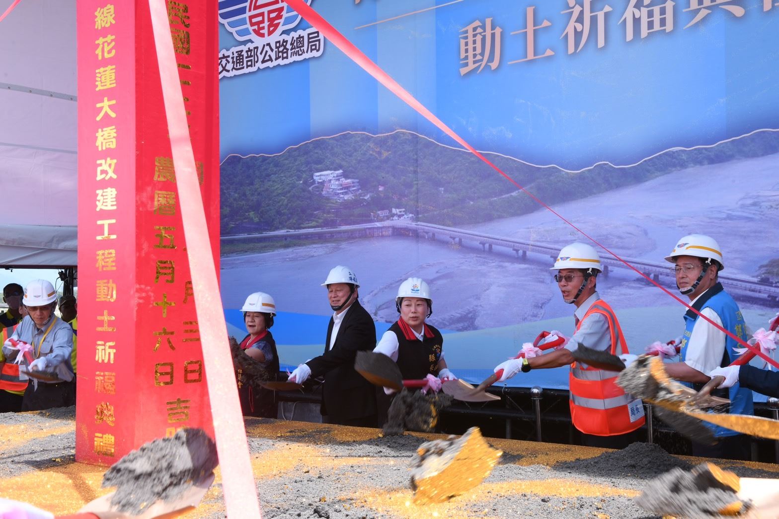 共同出席動土典禮的貴賓包括交通部公路總局長陳文瑞、公路總局第四區養護工程處長林文雄、經濟部水利署第九河川局局長王國樑、行政院東部聯合服務中心副執行長郭應義、立法委員傅崐萁、鄭天財、花蓮縣議員徐雪玉、林正福、鄭乾龍、黃馨、林源富、豐濱鄉鄉長邱福順、吉安鄉鄉長游淑貞、壽豐鄉鄉長曾淑懿及多位民意代表、在地村里長仕紳們皆到場共同見證。