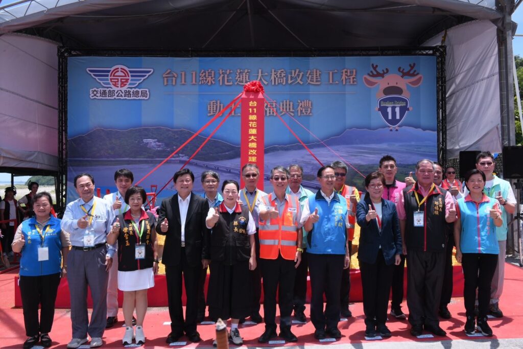 花蓮大橋啟用逾50年,為連接花蓮市區與海線的重要路段,因橋體老舊且受到107強震影響,考量橋梁可靠度及配合河川治理計畫,辦理花蓮大橋改建工程。交通部公路總局今(3)日舉行動土祈福典禮,公路總局長陳文瑞、花蓮縣長徐榛蔚及立法委員傅崐萁、鄭天財等貴賓,依循古禮焚香祈福、持鏟動土,祈求工程順利,預計於115年完工,將提供花蓮縣民更加安全、舒適、便捷之交通服務設施,並強化公共運輸發展。