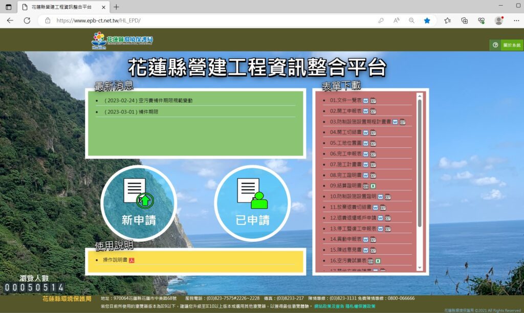 「花蓮縣營建工程資訊整合平台」電子E化申報網址: https://www.epb-ct.net.tw/HL_EPD