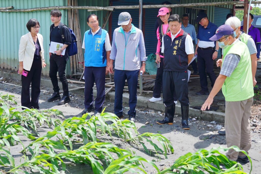 後至壽豐鄉勘查食用玉米受災田,看到農民辛苦栽種的玉米整片被11級強陣風吹倒連根部都裸露,有些更泡在水裡,陳吉仲部長也宣布今日將公告花蓮全區食用玉米及芥菜為天然災害現金救助地區,農民將可直接提報免除一道程序申請救助,其餘作物受災救助將滾動式公告。