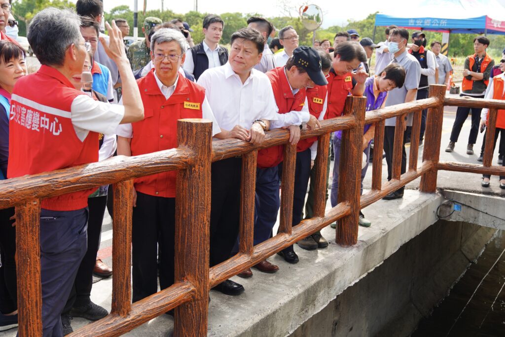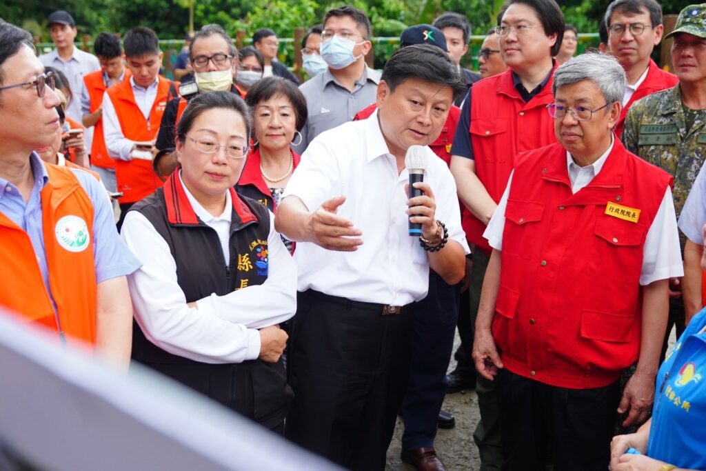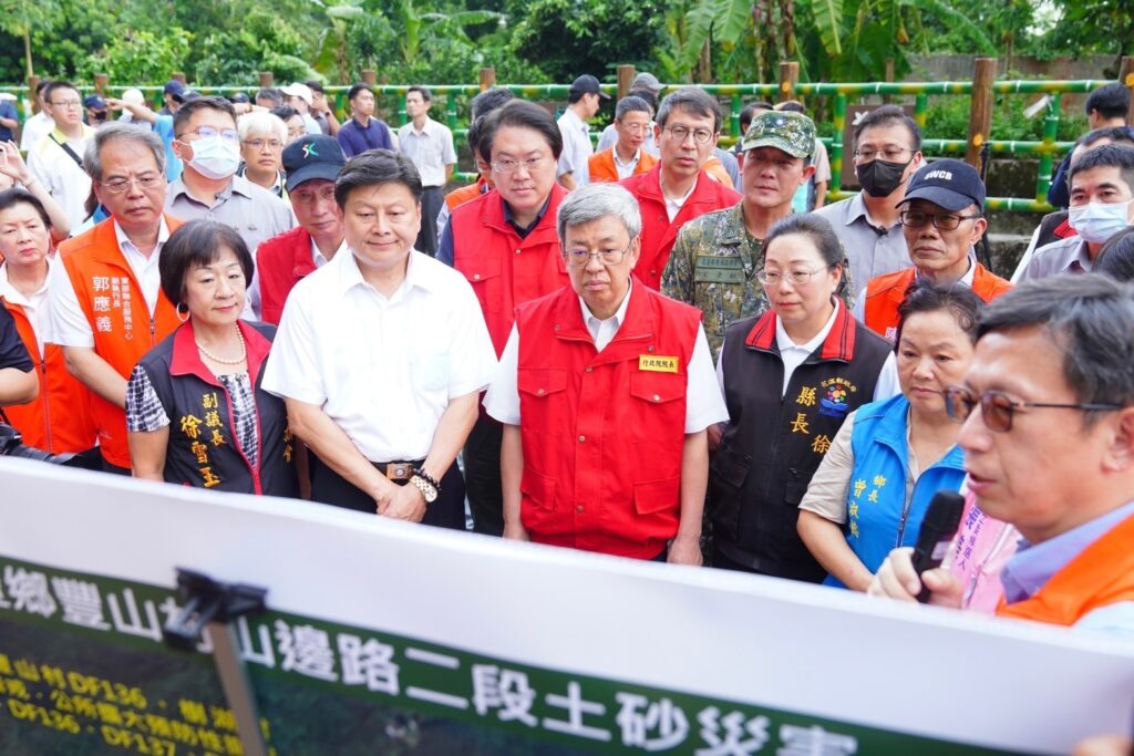 行政院長陳建仁首先赴花蓮縣吉安鄉光華排水水利設施視察治理績效,並於現場聽取災損簡報,花蓮縣府建設處表示,花蓮縣明里大橋、蚊子洞橋、西寶大橋受損嚴重及花74縣道下邊坡路基掏空,重建經費共需3億5千5百40萬元,另外縣府農業處表示赤柯山、六十石山道路縣府全力搶修中,壽豐鄉豐山村山邊路住戶遭土石掩埋情形。