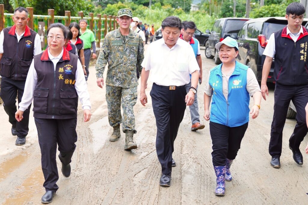 壽山村受災戶表達感謝傅崐萁委員、徐榛蔚縣長、徐雪玉副議長及軍方、慈濟協助清理,希望中央協助該流域治水經費。行政院陳建仁當場承諾會協助居民災後重建。