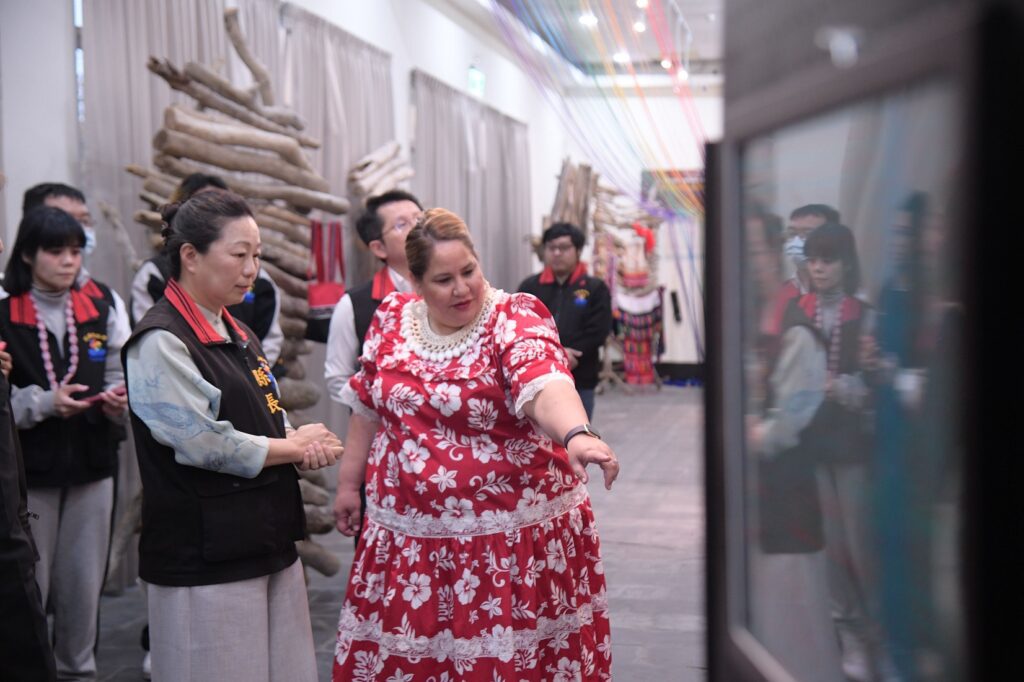 會面中,徐縣長與大使相談甚歡,提及原住民文化傳承的重要性,徐縣長除贈送《原藝百工II》予大使,書中收錄花蓮十三家原住民經營的民宿,還特別邀請大使前往臺灣原住民族文化館參觀原民處辦理的「2024花蓮縣織人大會師」展覽,現場展出六大原住民族工藝師以「原滿共融」為主軸,融合傳統與現代元素,精心編織的各式大小織品,每件作品都蘊含織者生命故事、對工藝技術的堅持與熱情,大使仔細欣賞一件件作品,不禁讚嘆織人卓越的編織工藝技術。