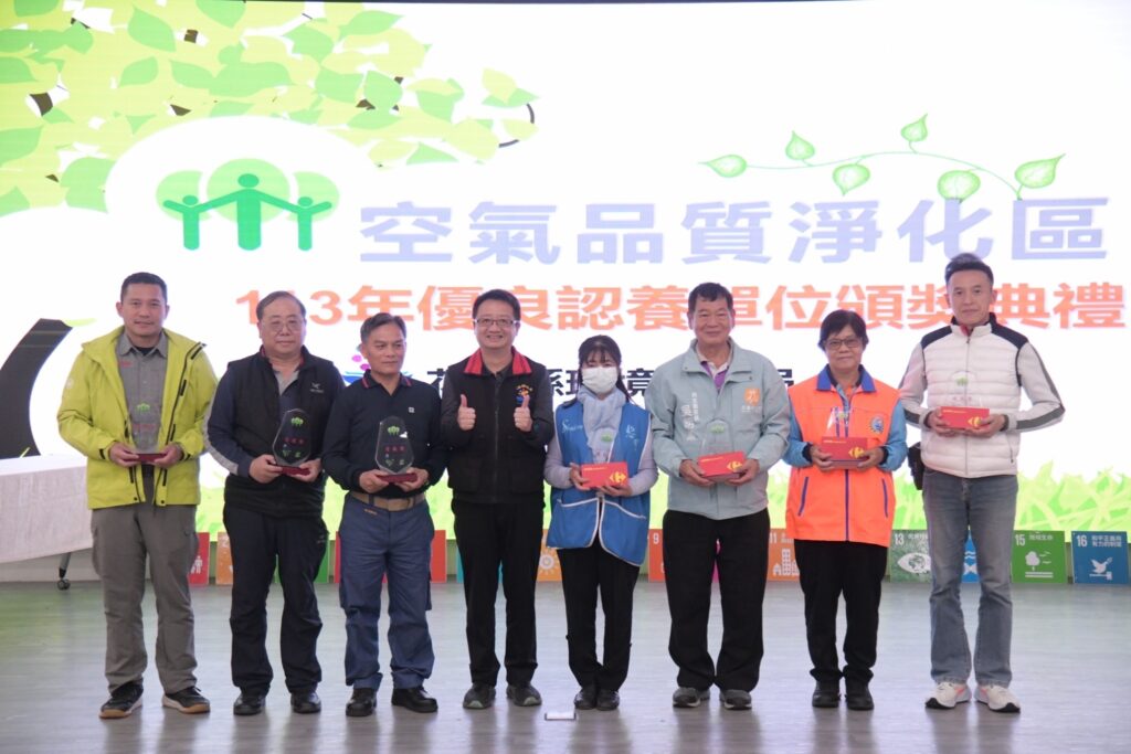 花蓮縣政府積極邀請縣內企業、社區發展協會、守望相助隊、學校及志工團體等單位一同參與認養本縣空氣品質淨化區,113年針對本縣23處空氣品質淨化區每季進行認養評比,志工社區團體部份由花蓮市民生社區發展協會認養的憲兵公園榮獲績優獎、花蓮縣私立黎明教養院認養的南北濱自行車道榮獲績優獎、吉安守望相助隊認養的希望公園榮獲績優獎及國立光復高級商工職業學校認養的光復鄉大馬段0343地號廢棄物堆置場綠化基地榮獲績優獎;企業認養部份由中華紙漿股份有限公司花蓮廠認養的台九線吉安鄉稻香路段榮獲貢獻獎、亞洲水泥股份有限公司花蓮製造廠認養的陶樸閣衛生掩埋場復育綠化基地榮獲貢獻獎及和平電力股份有限公司認養本縣18處空氣品質淨化區榮獲特殊貢獻獎。