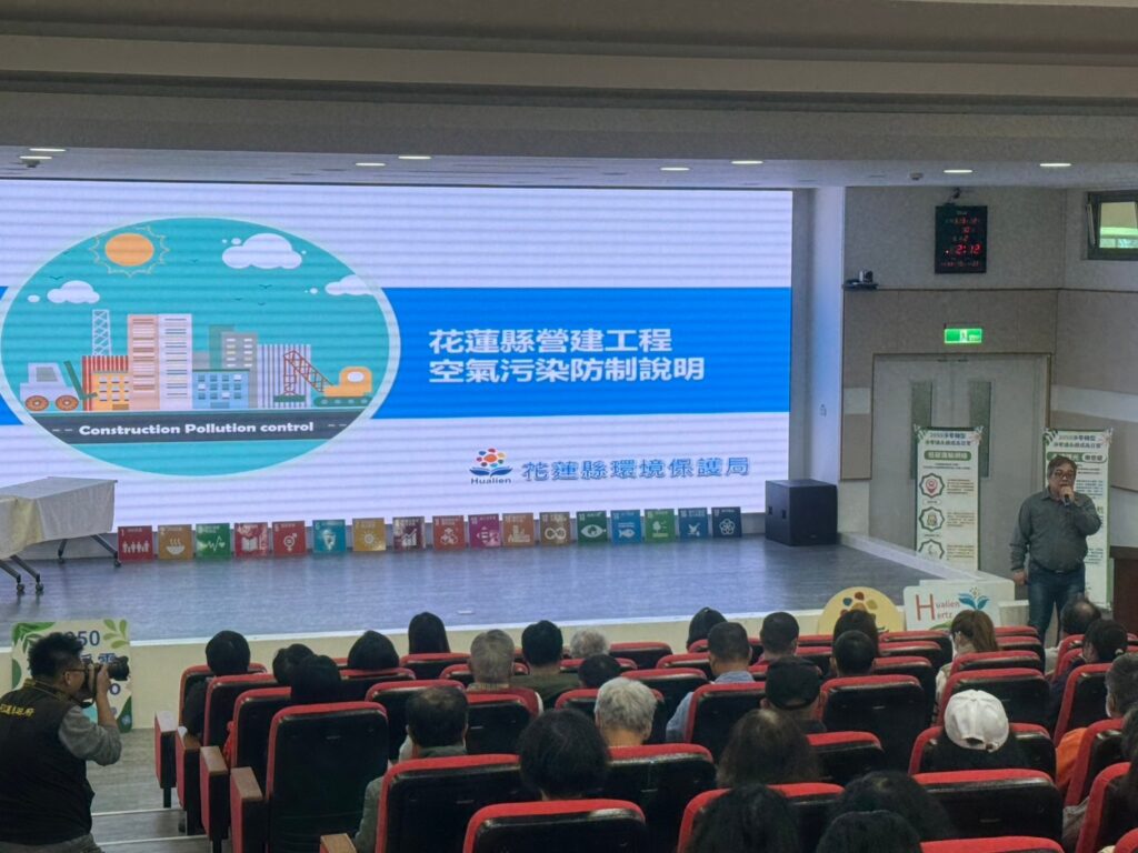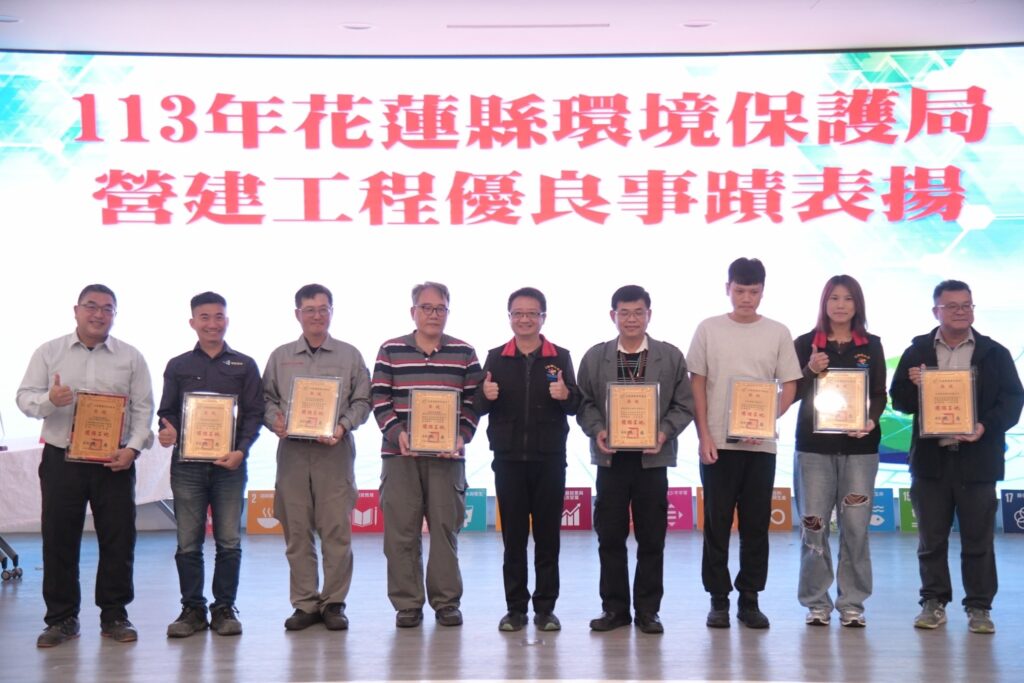 為鼓勵營建工地廠商努力參與環保工作推動,花蓮縣政府表揚「花蓮縣營建工地科技化管理及農廢稻草再利用優良廠商」,其中科技化空氣污染管理-營建工地微型感測器應用包括有港區常態式疏浚及養灘工程(2021~2026年度)、花蓮縣花蓮市「中美好室」社會住宅新建統包工程、花蓮縣全民運動館興建工程;農廢再利用-營建工地裸露地鋪設稻草的部分為台9線282K+100~284K+221(三民至三軒段)道路拓寬工程等四處工地。其中3處工地配合花蓮縣政府設置固定式空品感測器,並自主增設連動式自動灑水抑制揚塵系統,可提高粉塵防制效率10至15%,並縮短空氣污染應變處理時效。